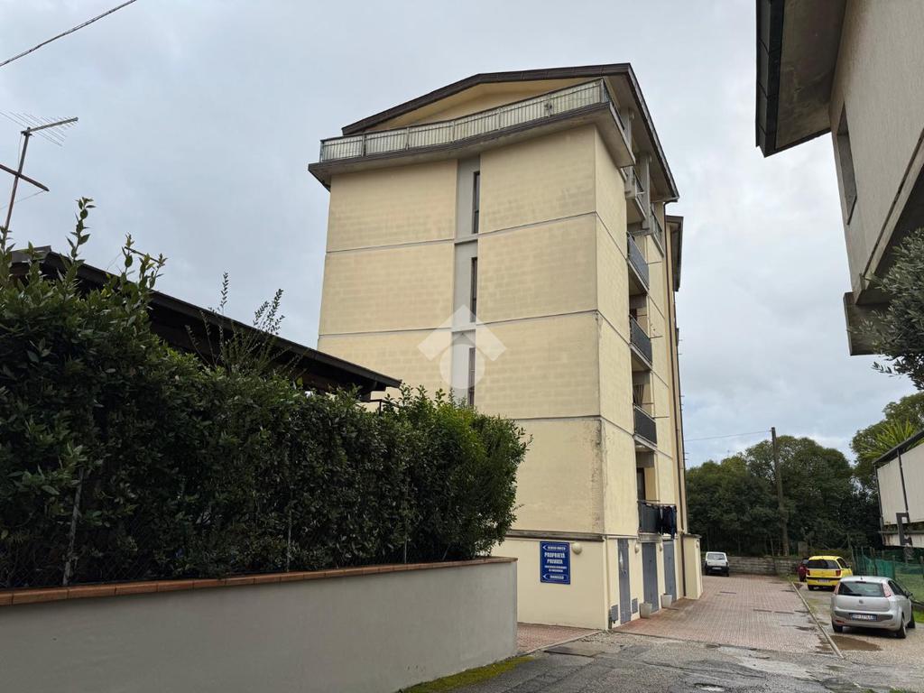 Completa la proprietà un garage di circa 20 mq al piano terra ed un area condominiale che circonda il fabbricato per poter posteggiare le auto.