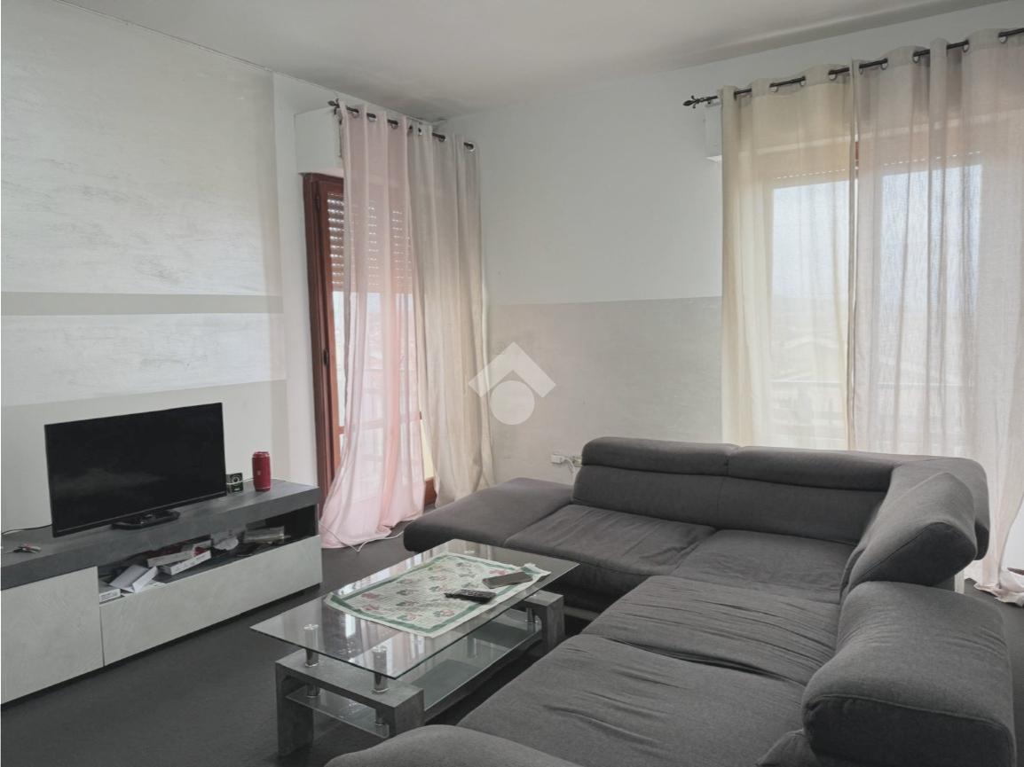 Il soggiorno di 20 mq, separato dalla cucina, è dotato di porta finestra per l'accesso al secondo terrazzo.