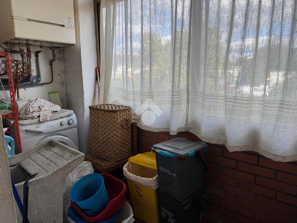 L'appartamento è composto da soggiorno e cucina abitabile con accesso a balcone verandato adibito a zona lavanderia.