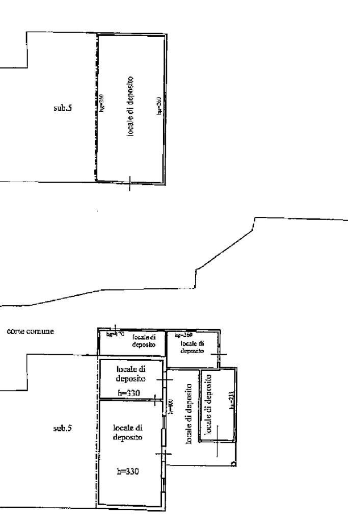 Al piano terra troviamo cinque locali ad uso deposito, ben distribuiti e adattabili a diverse soluzioni progettuali in fase di ristrutturazione.