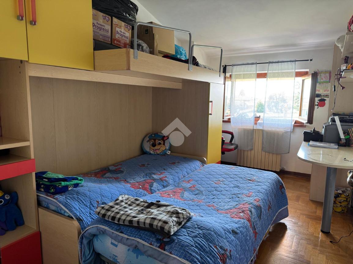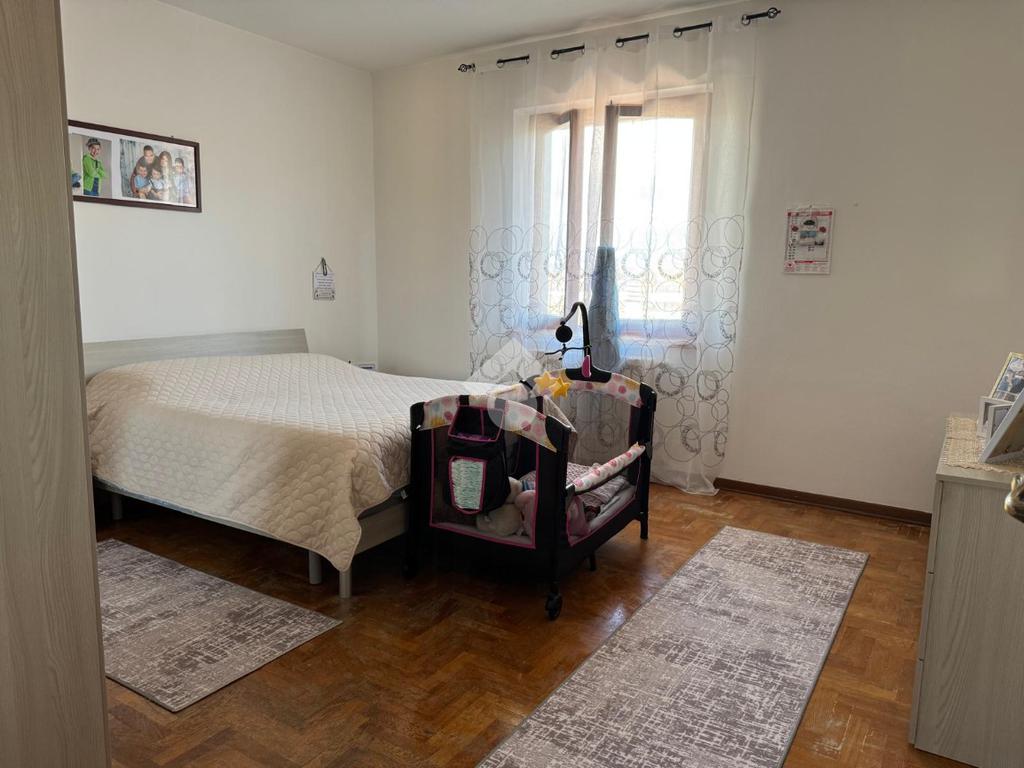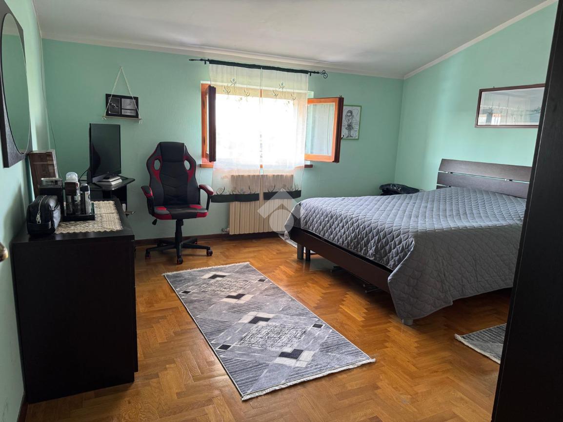 Percorrendo il vano scala si arriva al pianerottolo di mezzo dove troviamo una camera doppia corredata di ripostiglio.