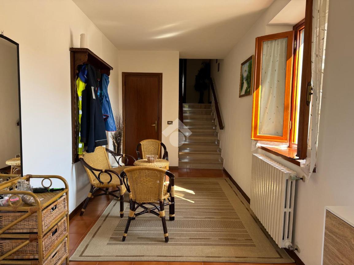 Si accede al piano terra dell'abitazione in un ampio ingresso dal quale si raggiunge sia il seminterrato con la presenza di due cantine sia il primo piano.