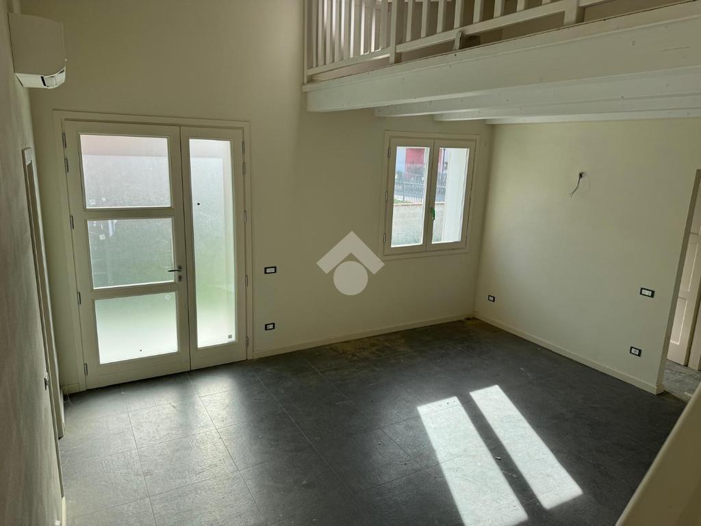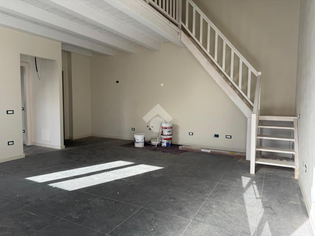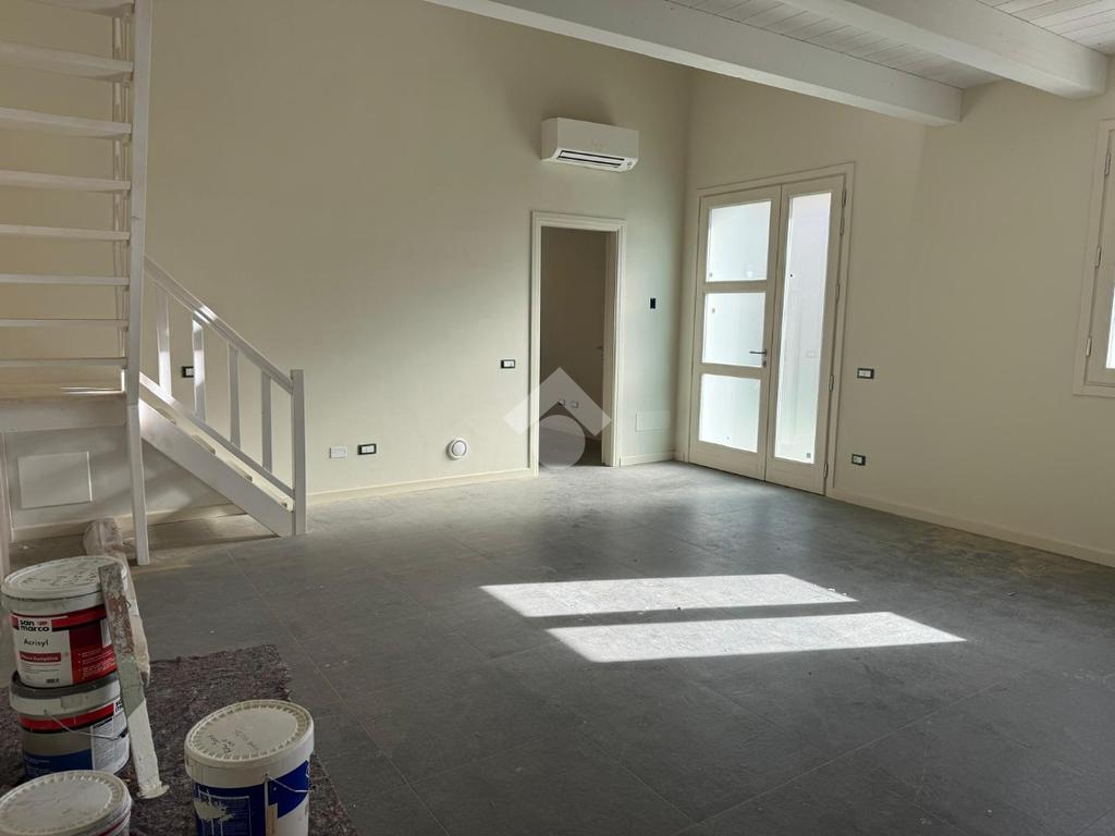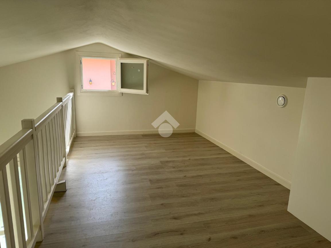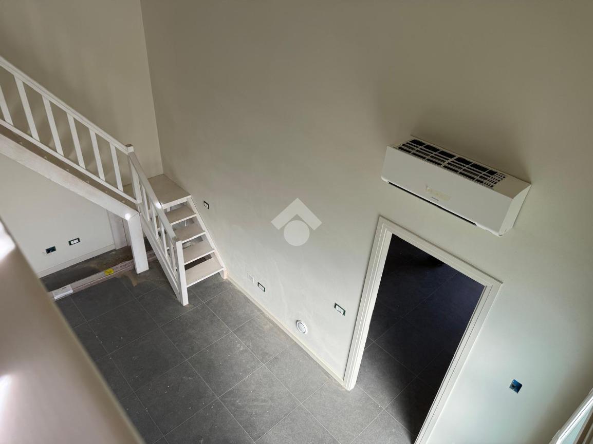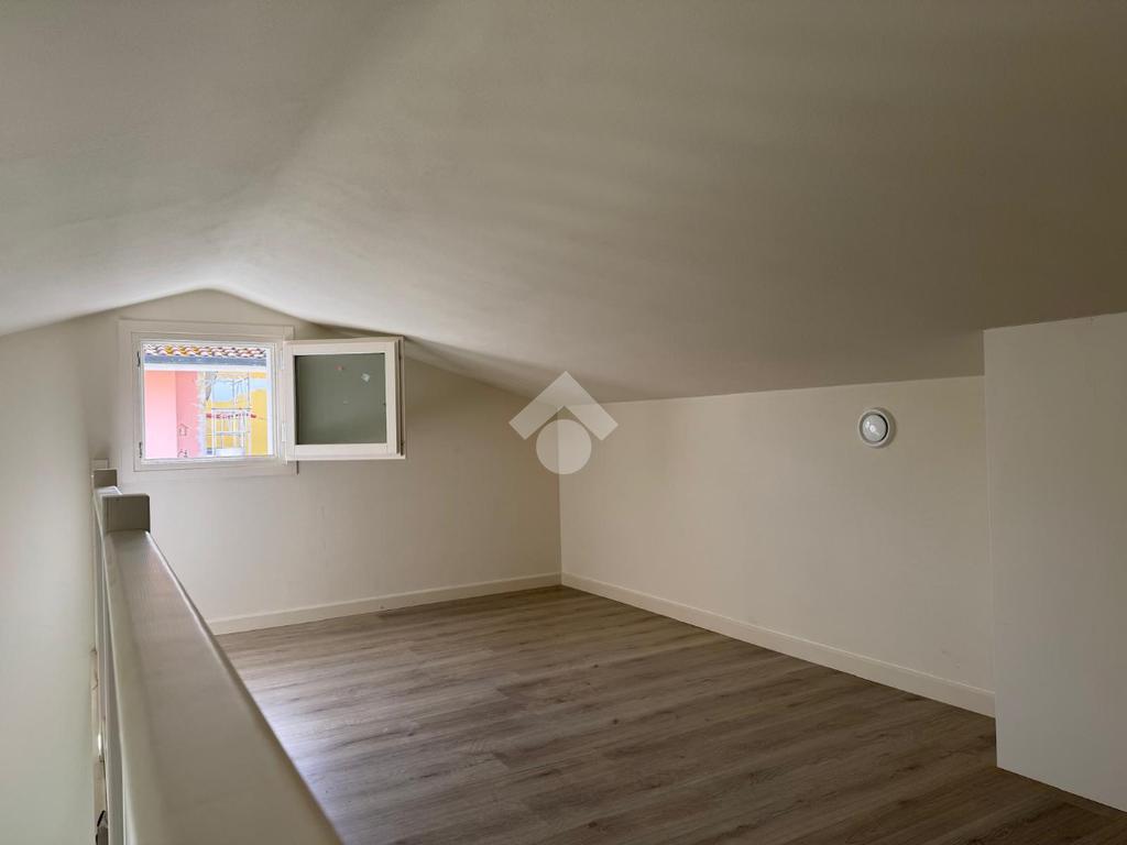 Si accede all’interno direttamente in un luminoso soggiorno con angolo cottura, dove troviamo una scala che ci conduce al soppalco finestrato di 14 mq a vista nella zona giorno.